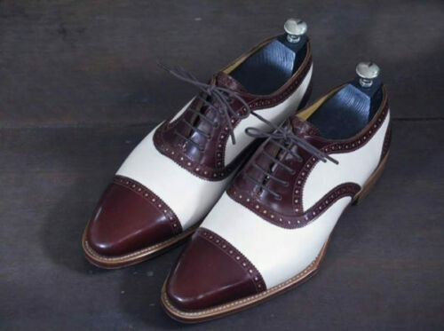 Handmade Men’s Leather Lace Up Stylish Shoes, Men’s Brown White Cap Toe Shoes