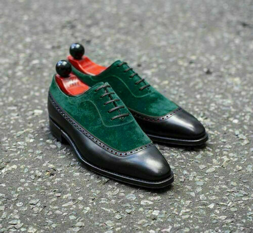 Men's Green Black Leather Suede Lace Up Shoes Men Dress Formal Square Toe Shoes