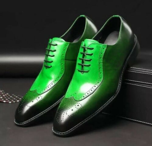 Unique Zuccini Malachite Green Medallion Toe Balmoral Real Leather Wedding Shoes