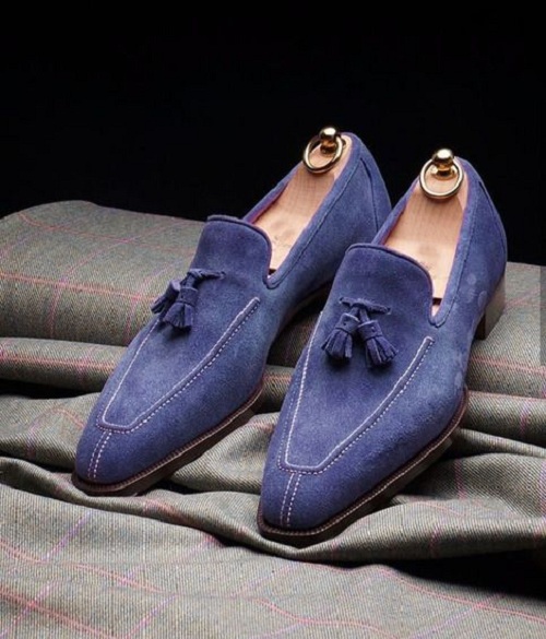 Dress shoes for mens, Men blue Suede Tassels shoes moccasins loafer slip ons