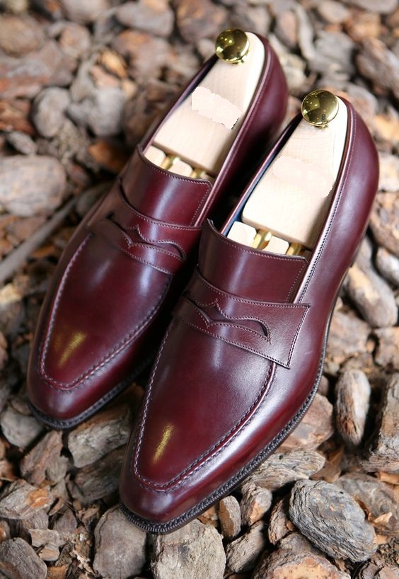 Handmade Men Burgundy color leather shoes moccasins, Men burgundy formal shoes