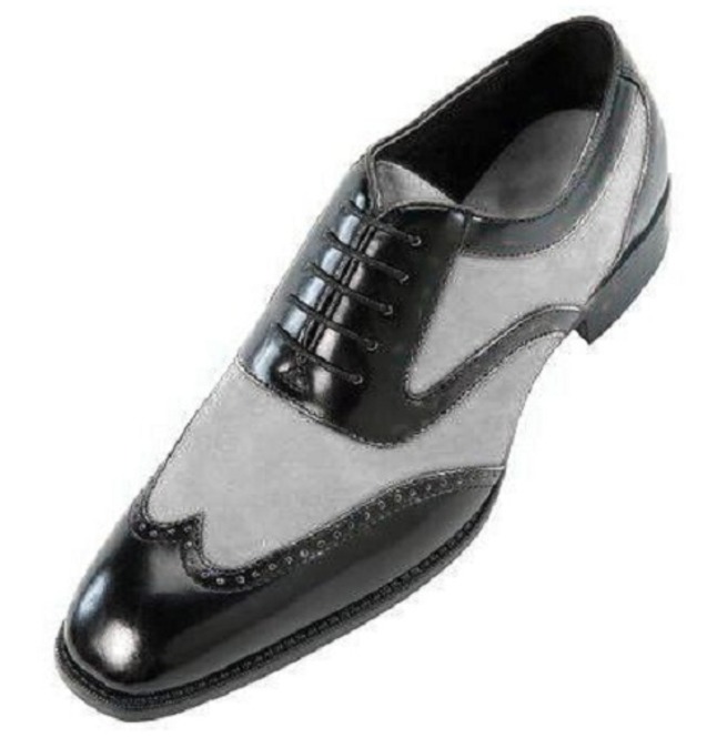 Handmade Men Black And Gray Wingtip Brogue Formal Shoes Tuxedo Dress Shoes