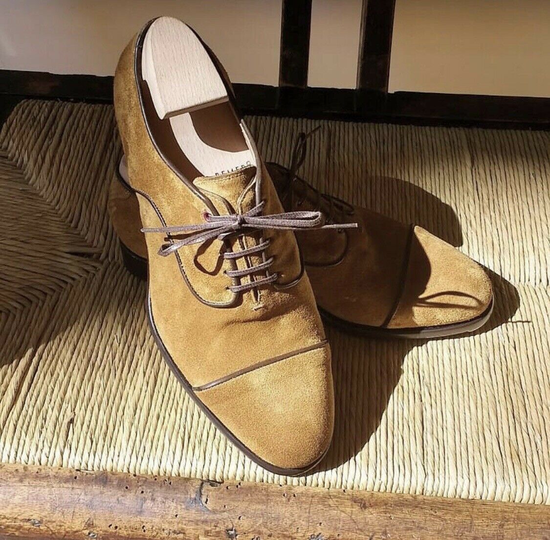 New Pure Handmade Suede Leather Camel Dress Shoes for Men's