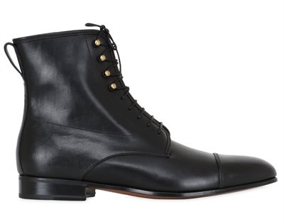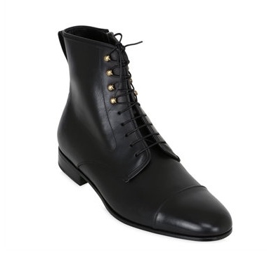 Men's Leather Ankle High Leather Boots with Metallic Eyelets