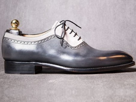 Handmade Men’s Leather Suede Shoes, Men Gray White Derby Stylish Dress Shoes