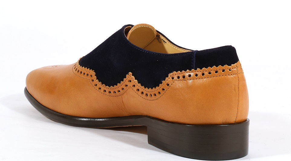 New Handmade Men Franco Italian Camel / Blue Leather and Suede Oxfords Shoes