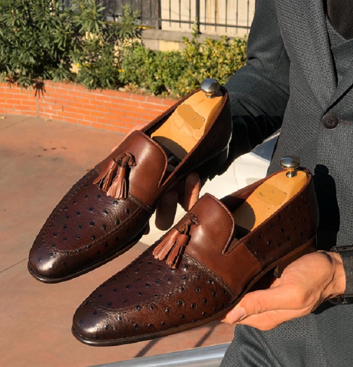 Handmade Men Brown Calf-Skin Leather Tassel Loafer Shoes