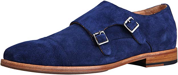 Men’s Monk Strap Blue Loafers Handmade Leather Dress Shoes