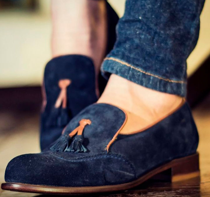 Handmade Men Tassels Blue Loafer Casual Dressing Shoes, Men Tassel Shoes