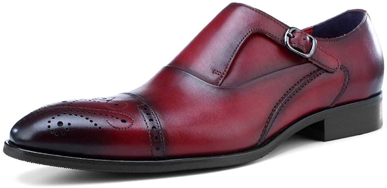 New Luxury Genuine Leather Men’s Monk Strap Oxfords Handmade Formal Dress Semi Brogue Shoes
