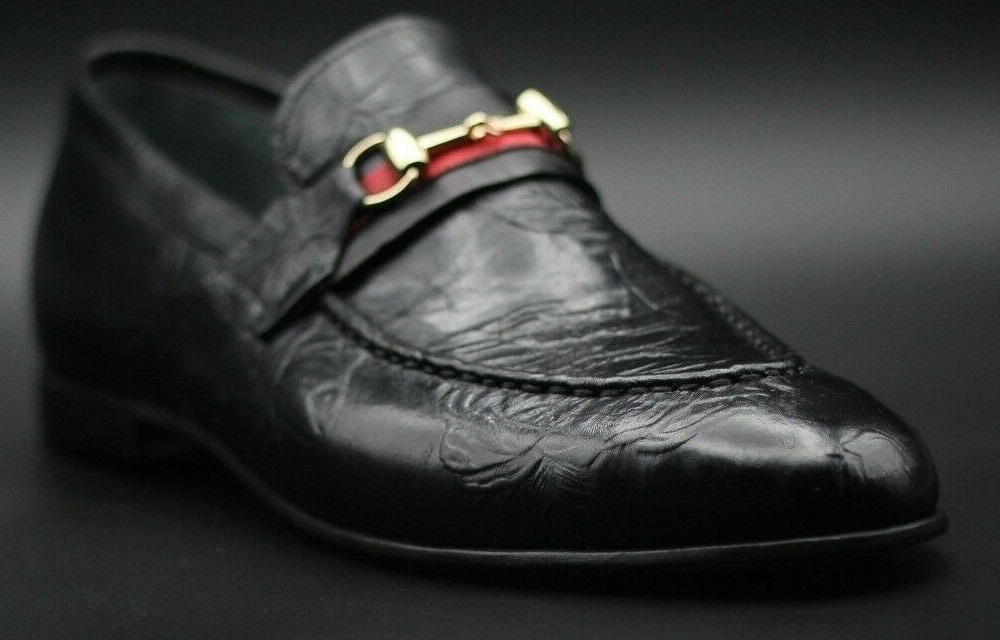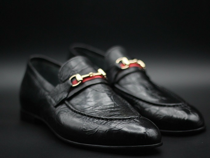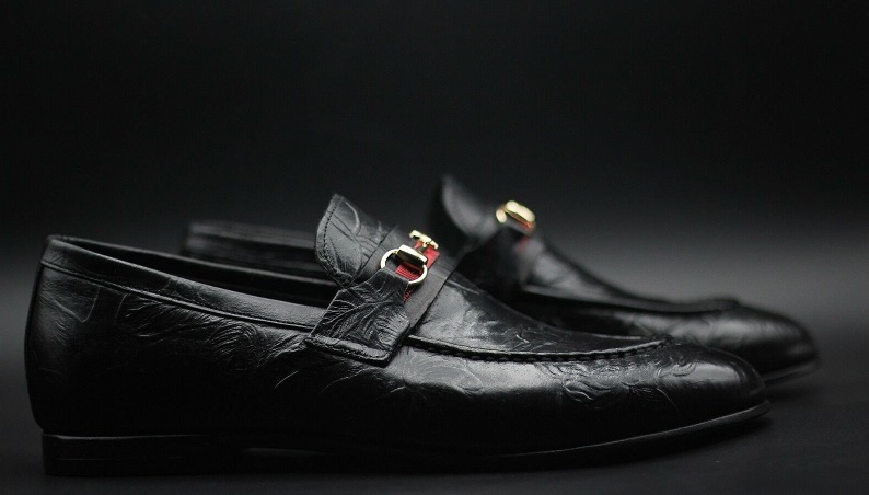 Handmade Men’s Genuine Black Printed Leather Moccasin Formal Wear Shoes