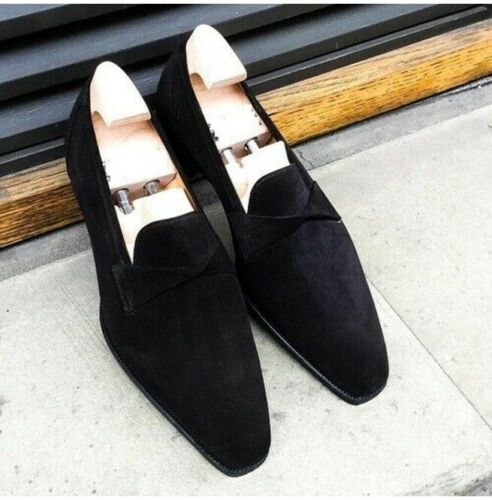 Handmade Mens Black Suede Moccasins, Men Black Suede Dress Shoes, Mens Shoes
