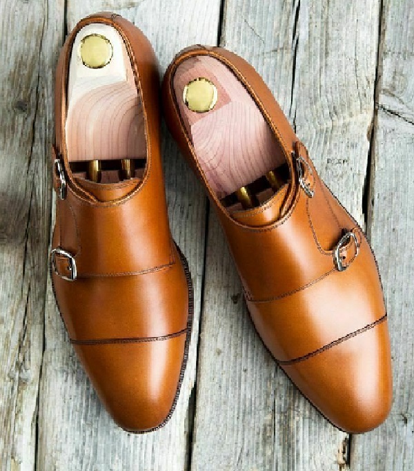 Handmade Men's Double Monk Strap Dress Shoes, Real Leather Office Shoes