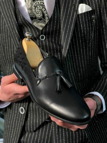 Handmade Men's Round Toe Tassels Moccasin Dress Shoes, Real Leather Shoes