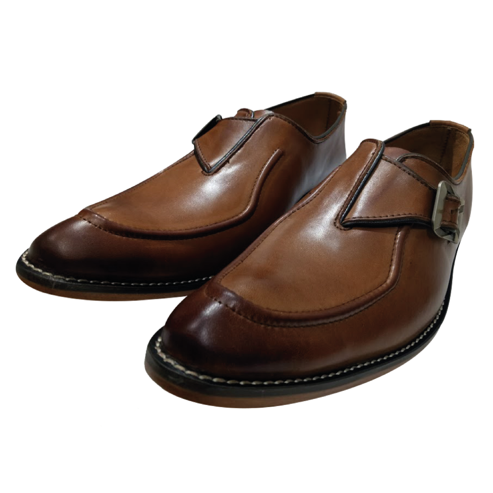 Mens Dress Shoes Real Leather Brown Single Monk Strap Buckle Formal Shoes