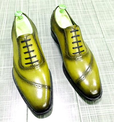 Men's Yellow Oxford Derby Whole Cut Laceup Leather Handmade Formal Dress Shoes