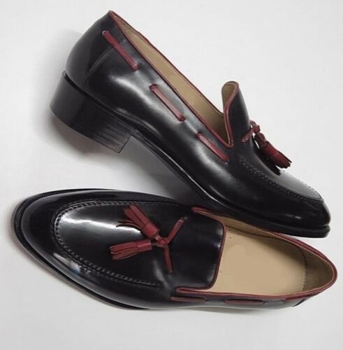 Handmade Black Color Leather Loafer Slipper Dress Mens Fashion Tussles Shoes