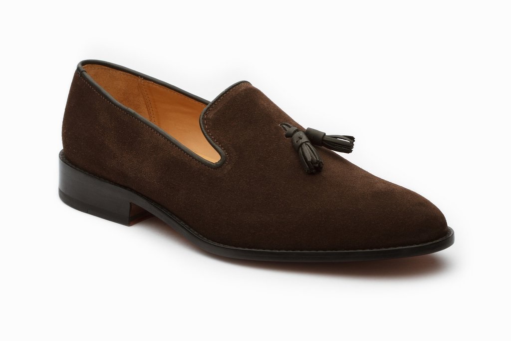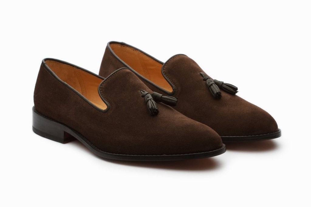 Handmade Dark Brown Suede Loafer Slippers, Men's Tassel Moccasin Dress Shoes
