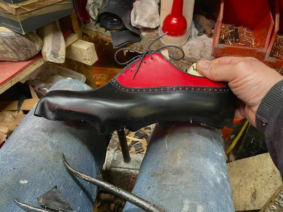 Handmade men two tone shoes, men burgundy and black dress shoes, leather shoes