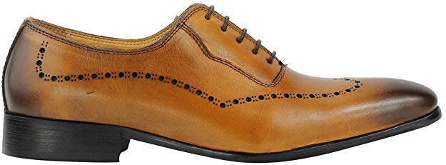 Mens Tan Brown Burnished Real Leather Italian Design Formal Oxford Lace up Shoes