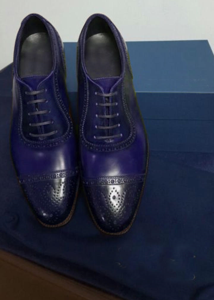 Cap Toe Oxford Royal Blue Black Leather Casual Wear Lace Up Shoes