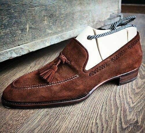 Handmade brown suede leather shoes, dress moccasin slip ons men, loafer shoes
