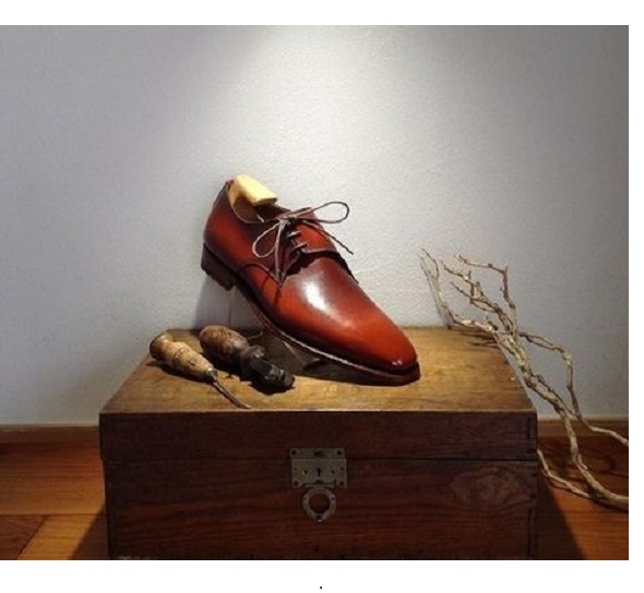 New Handmade Men's Burgundy Leather Side Lace Up Shoes