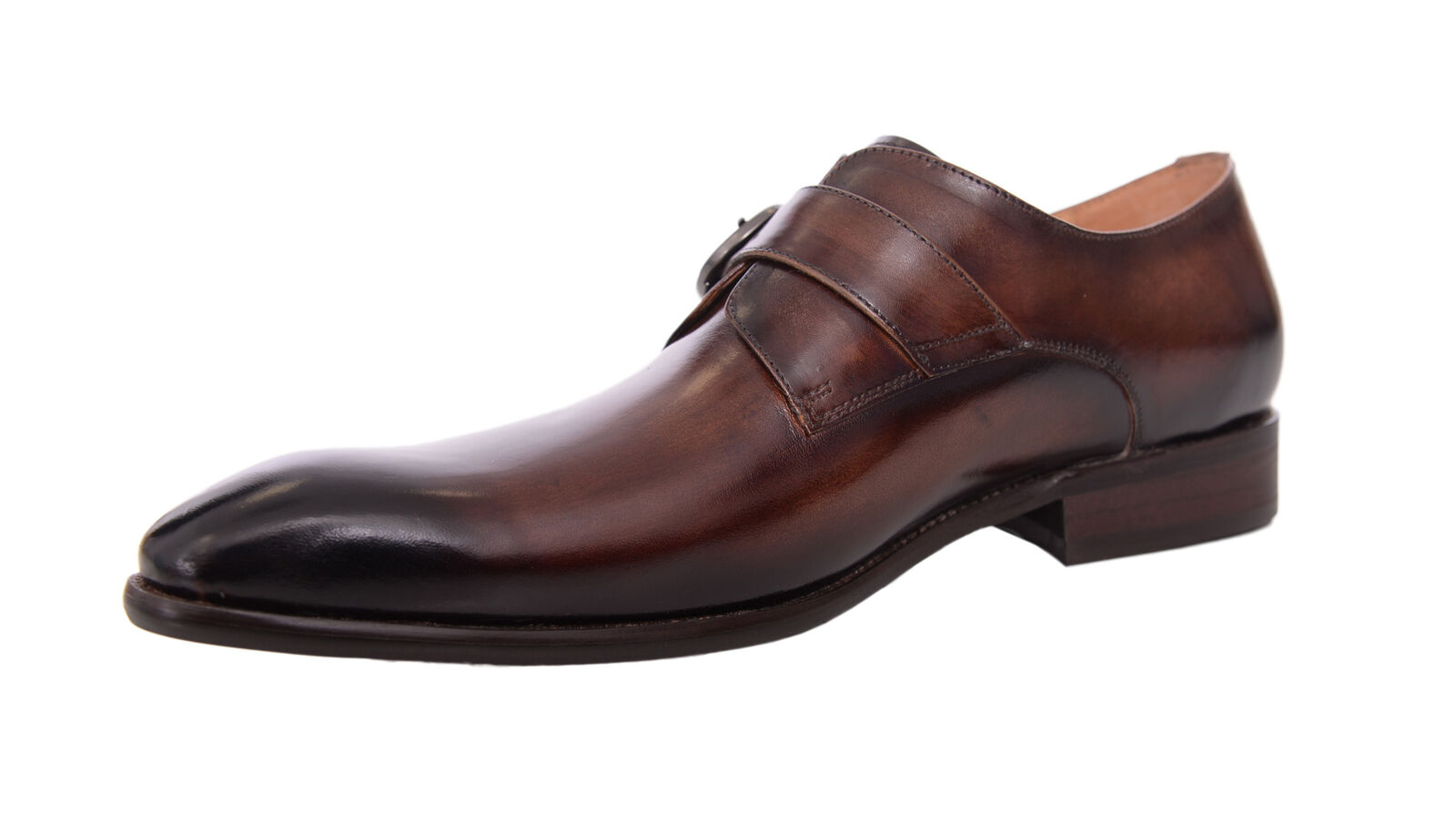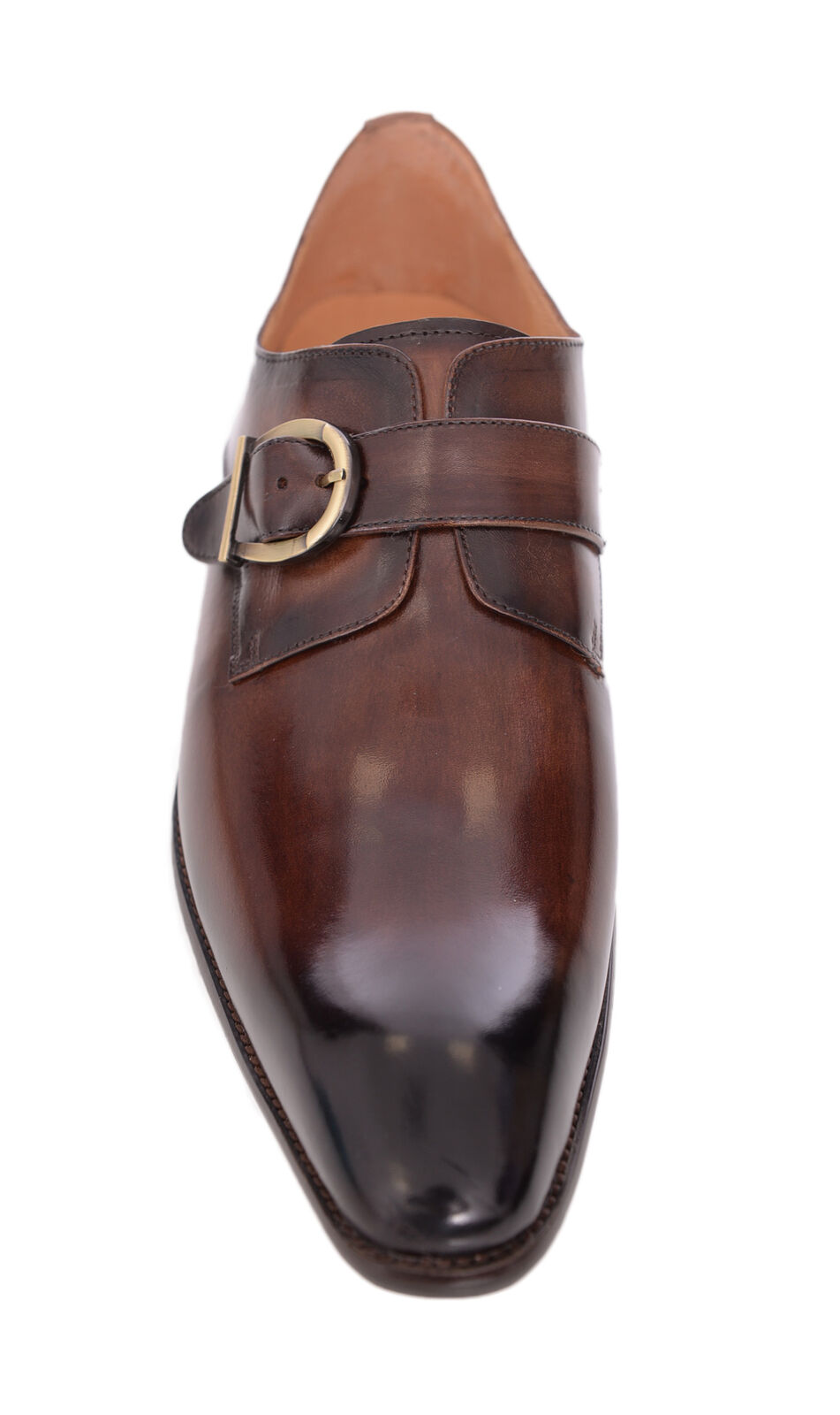 Carrucci Chestnut Brown Burnished Toe Single Monk Strap Leather Dress Shoes