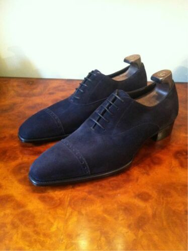 Handmade Men's Blue Brogue Lace Up Dress Shoes, Real Suede Office Shoes
