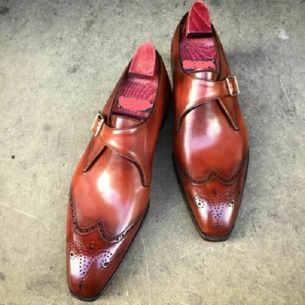 Handmade Men's wing Tip Brogue Monk Strap Business Dress Shoes Real Leather Shoe