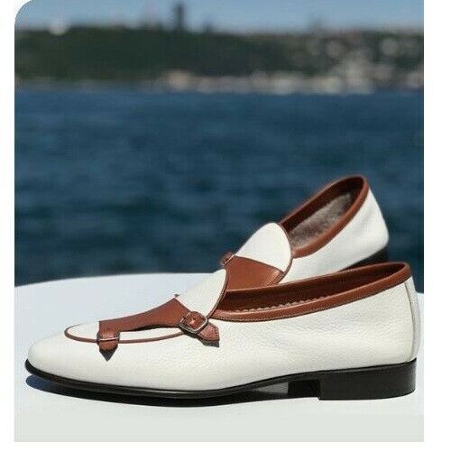 Handmade Men Two Tone Double Monk Strap Formal Shoes, Real Leather Office Shoe.