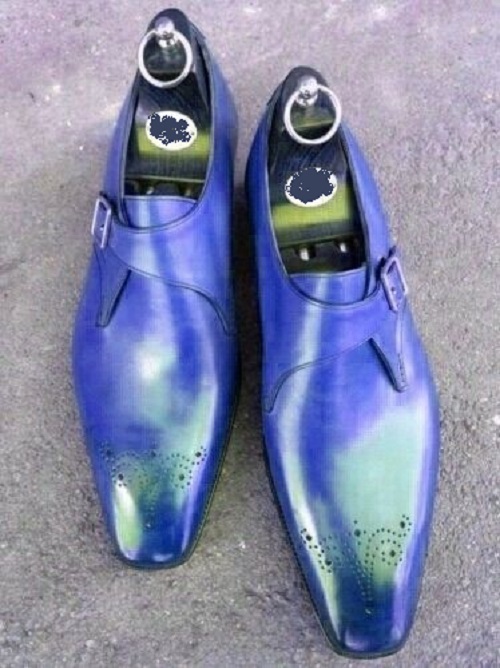 Customize Royal Blue Medallion Toe Single Monk Strap Quality Leather Dress Shoes