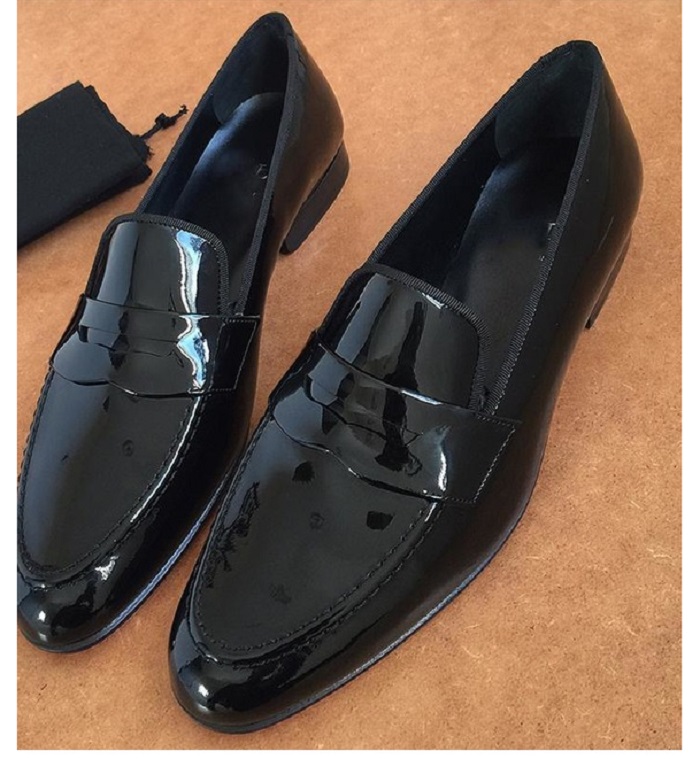 Handmade Men Black Formal Round Toe Moccasin Business Real Leather Shoes