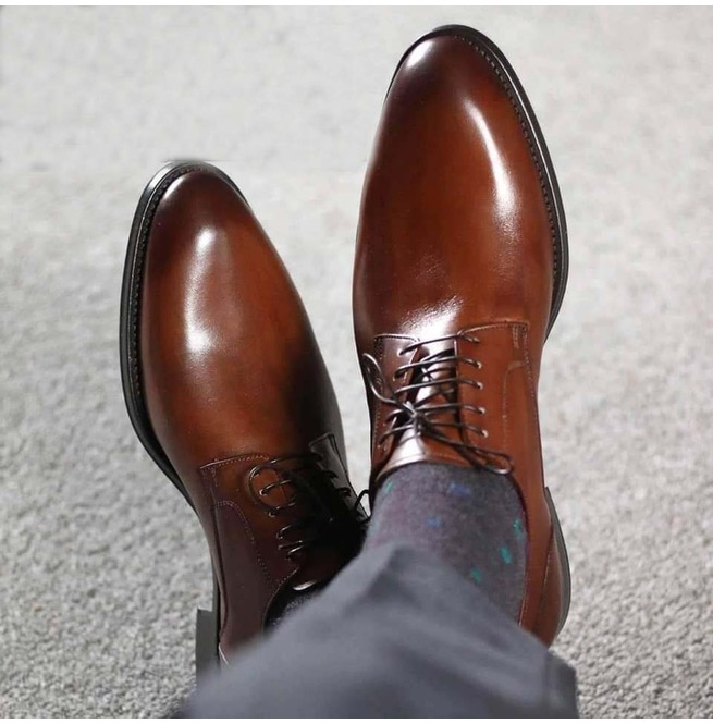 Handmade Men's Brown Formal Derby Lace Up Round Toe Dress Leather Shoes