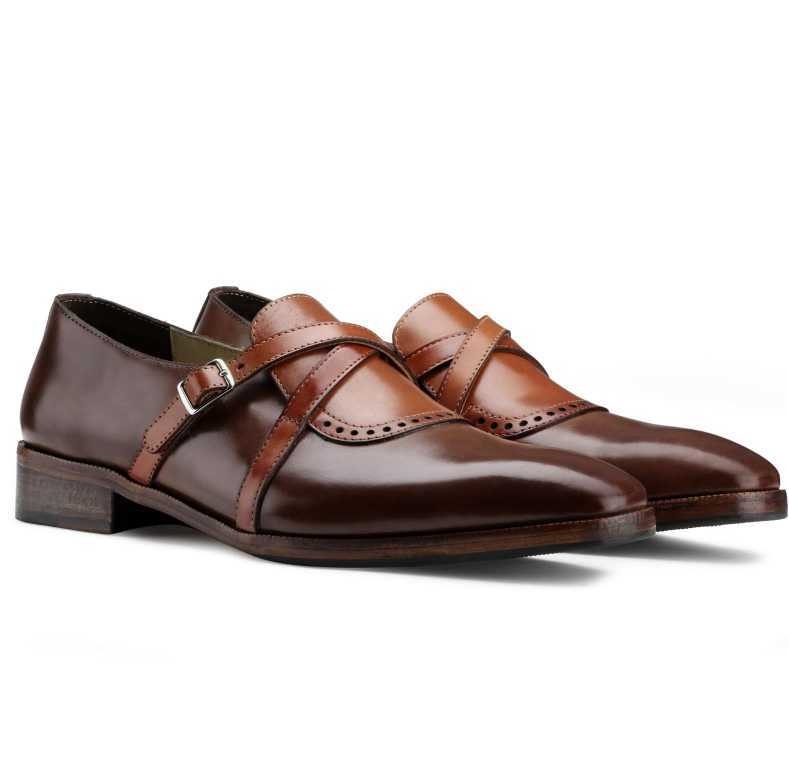 Handmade New Men's Tan Brown Wing Tip Monk shoes Leather Shoes, Men Custom Designer Shoes