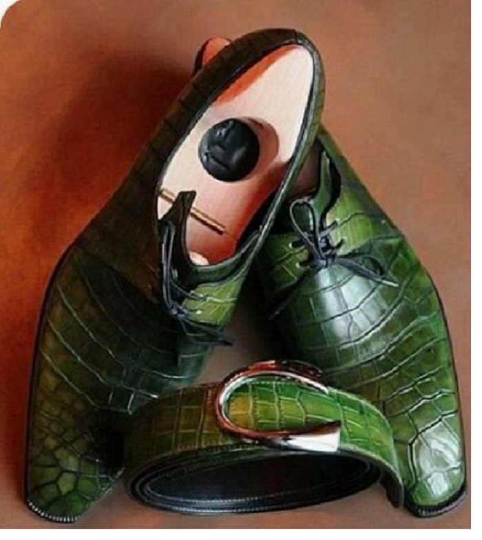 Handmade Men's Green Derby Lace Up Crocodile Texture Leather Office Dress Shoes