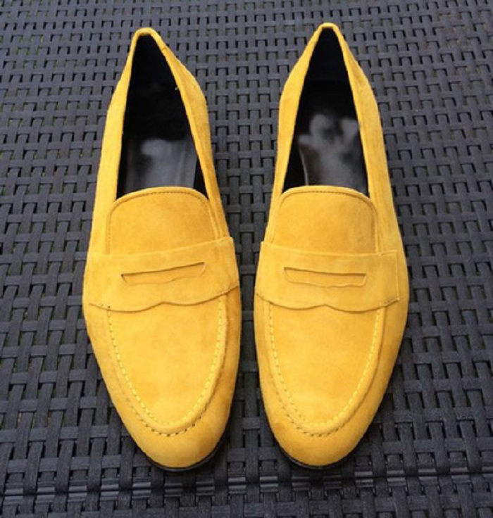 Mens Formal Design Handmade Yellowish Suede Penny Loafers SlipsOn Moccasin Shoes