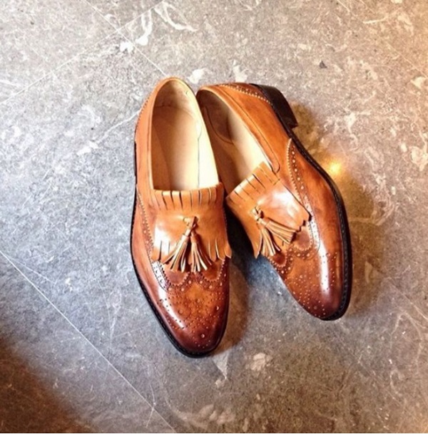 Handmade Men Dress Moccasin Shoes, Men Tan Leather Shoes, Brogue Slip on