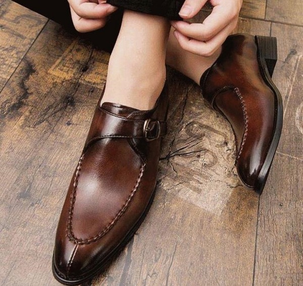 Handmade Two Tone Chocolate Brown Leather Monk Strap Split Toe Formal Shoes
