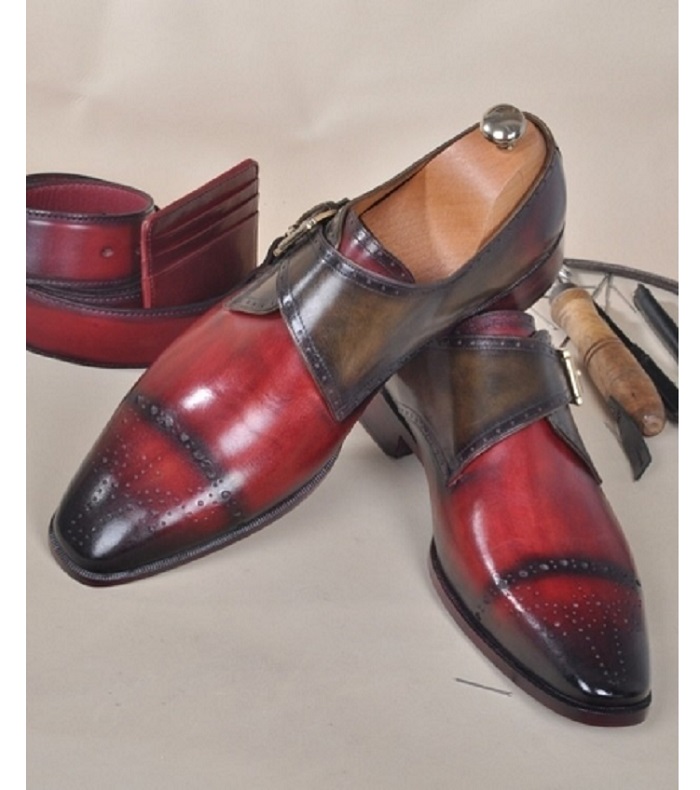 NEW HANDMADE MENS FULL GRAIN ITALIAN LEATHER SINGLE BUCKLE MONK STRAP LUXURY SHOE
