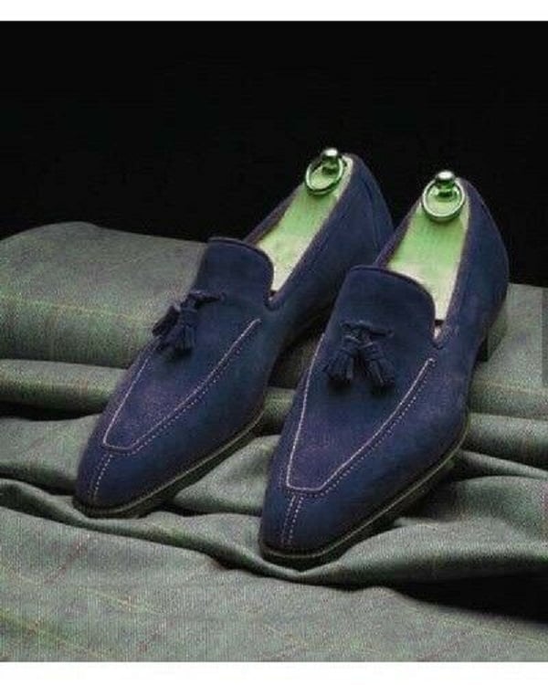 Handmade men navy suede shoes, dress moccasin shoes, men leather formal shoes