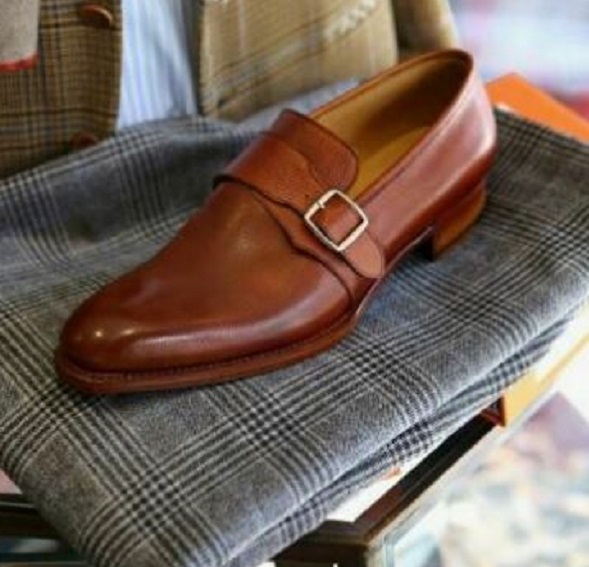 Handmade men dark brown monk strap business shoes for men, leather dress shoes