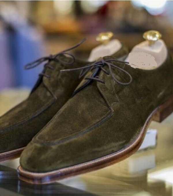 Handmade Men's Brown Derby Lace Up Dress Shoes, Real Suede Business Shoes