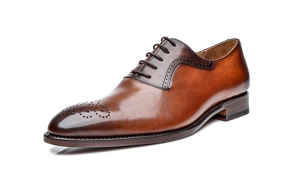 Handmade Men Two Tone Brown Pointed Brogue Toe Leather Shoes, Men Designer Shoe