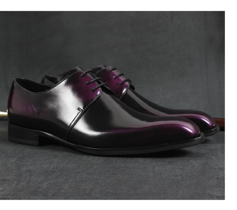 Handmade Tone Black Purple Leather Shoes, Men's Lace Up Shoes