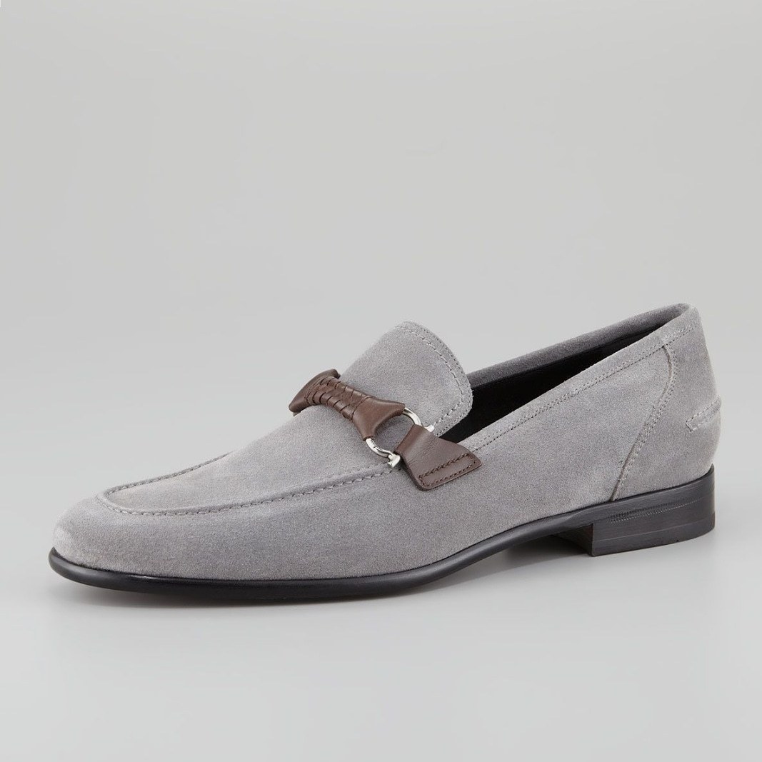 Handmade Men Gray Suede Leather Brown Buckle Loafer Moccasin Handmade Shoes