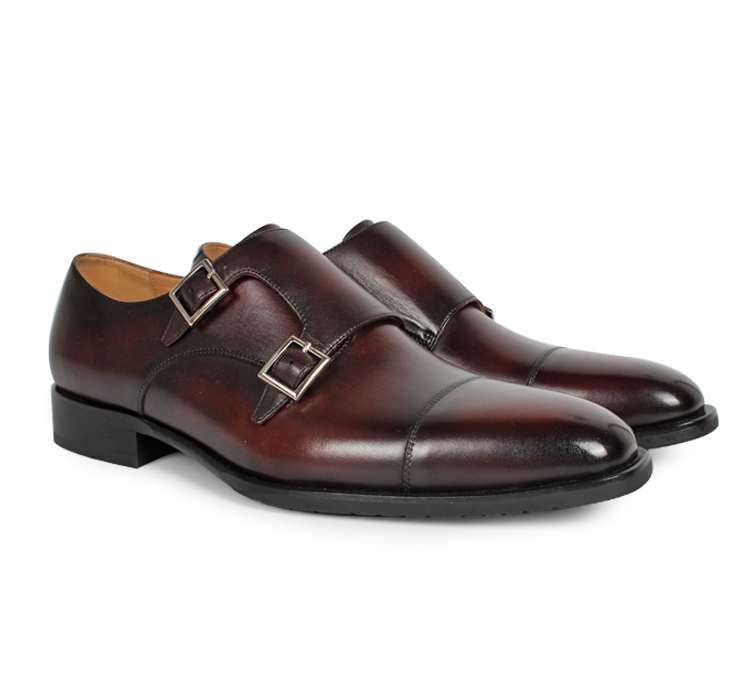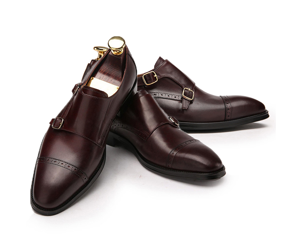 Handmade Men's Dark Maroon Double Monk Leather Shoes For Men's