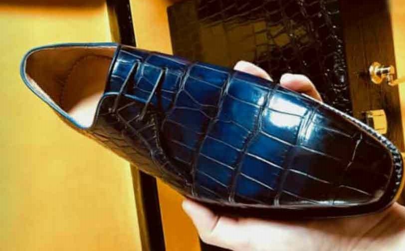 New Handmade Men's Genuine Blue Crocodile Print Lace-up Shoes