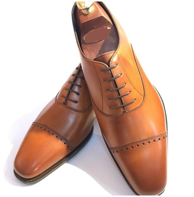 Men Handmade Tan Formal Dress Shoes With Lace up Closure, Dress Shoes