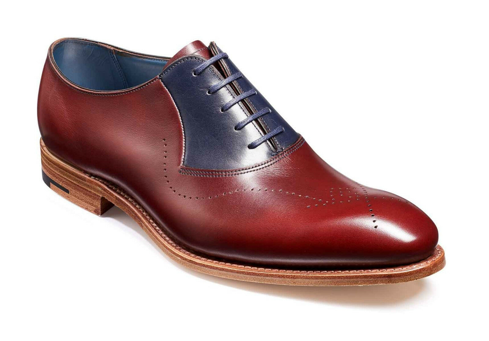 Men's Maroon Red Blue Contrast Medallion Toe Real Leather Lace Up Shoes